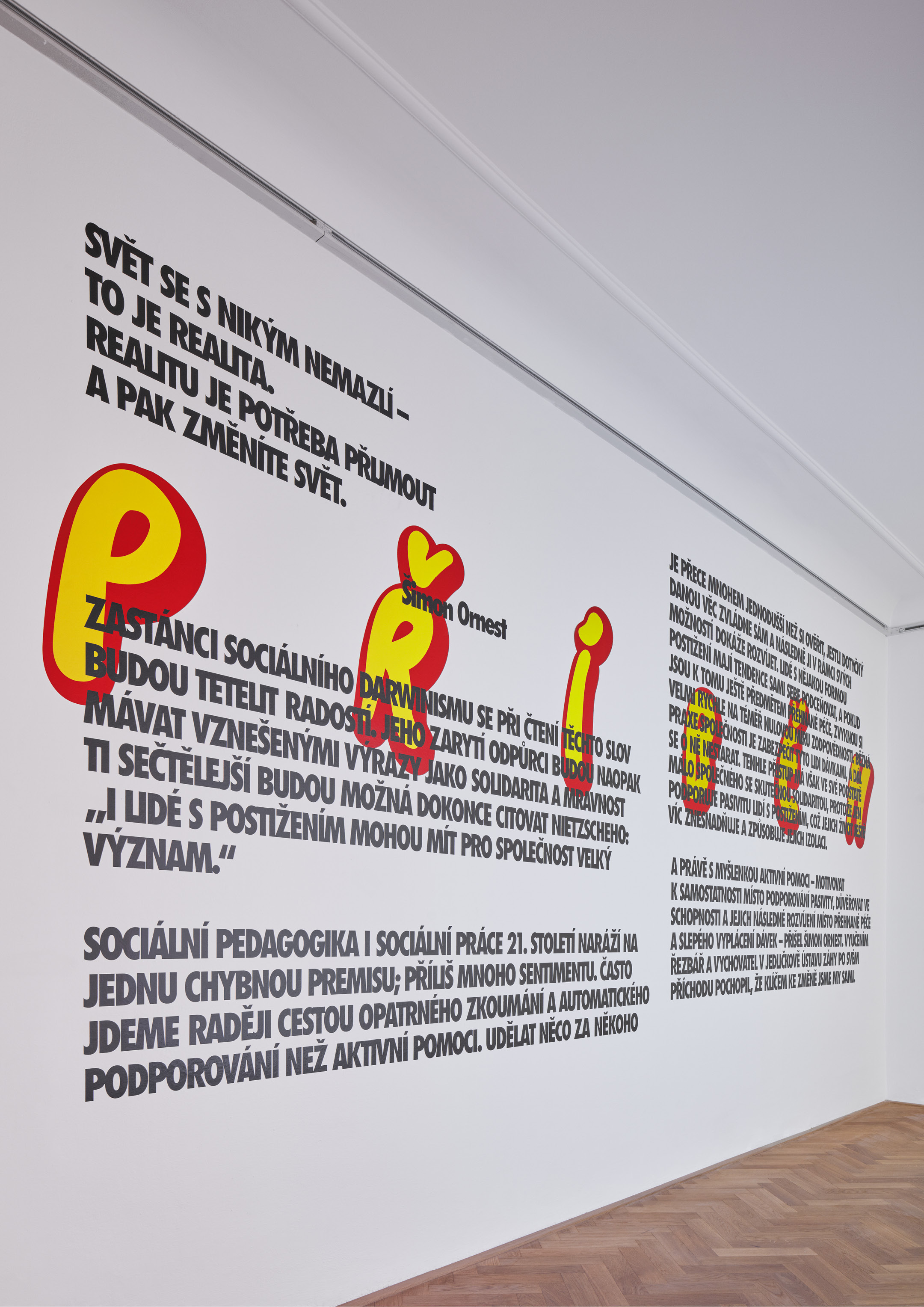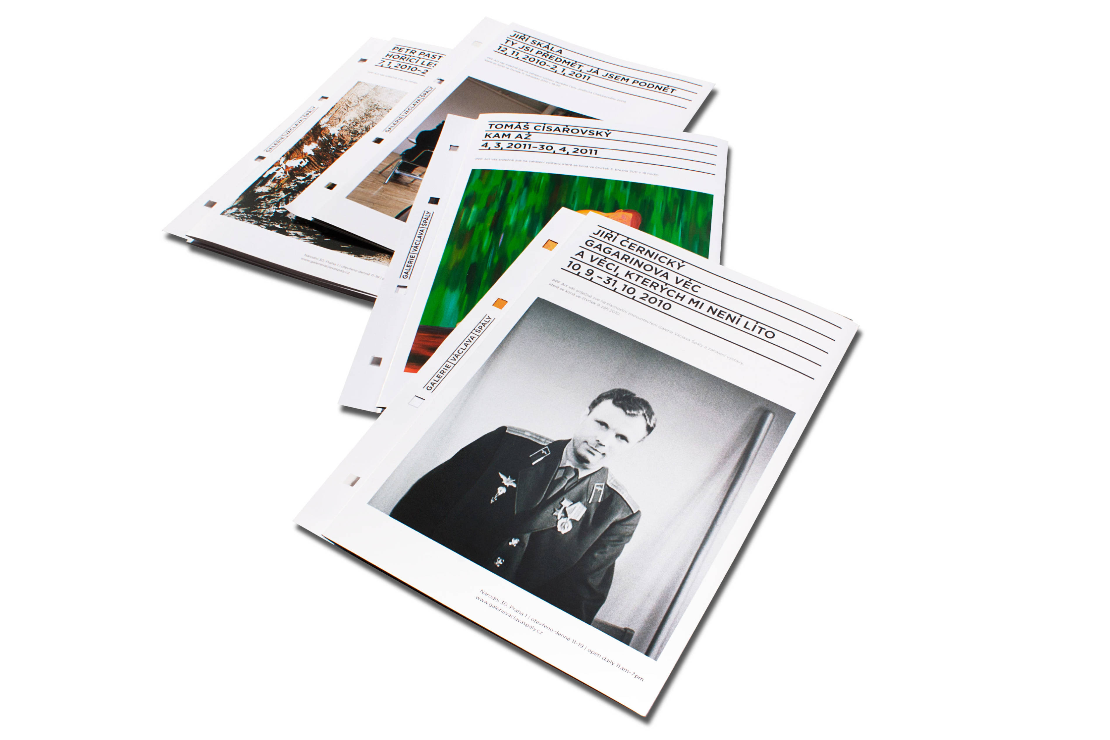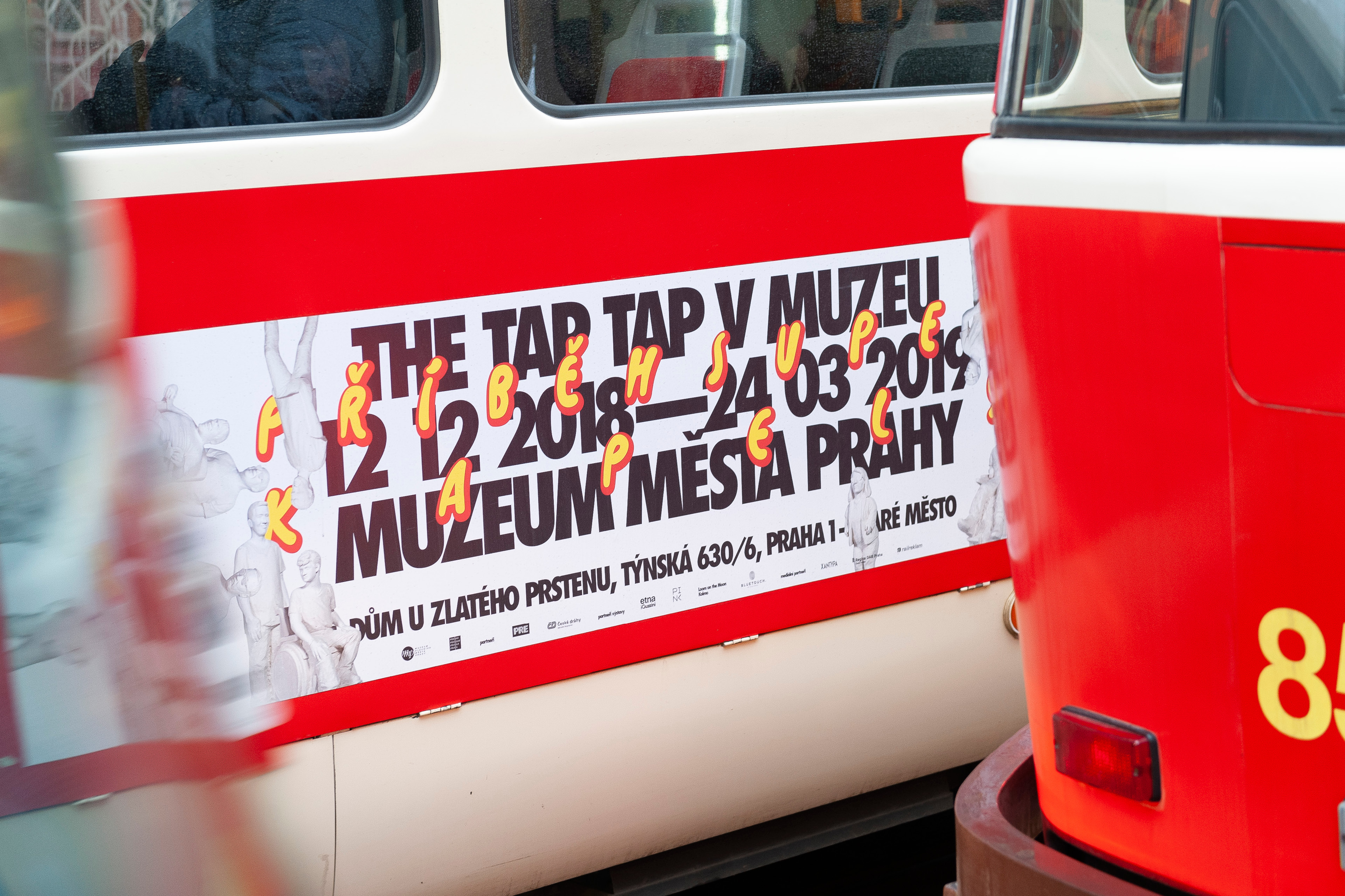 grafický design výstav Praha hoří, The Tap Tap v muzeu či Městem posedlí, výstavní panely pro Paměť národa, vizuální identita Galerie Václava Špály.