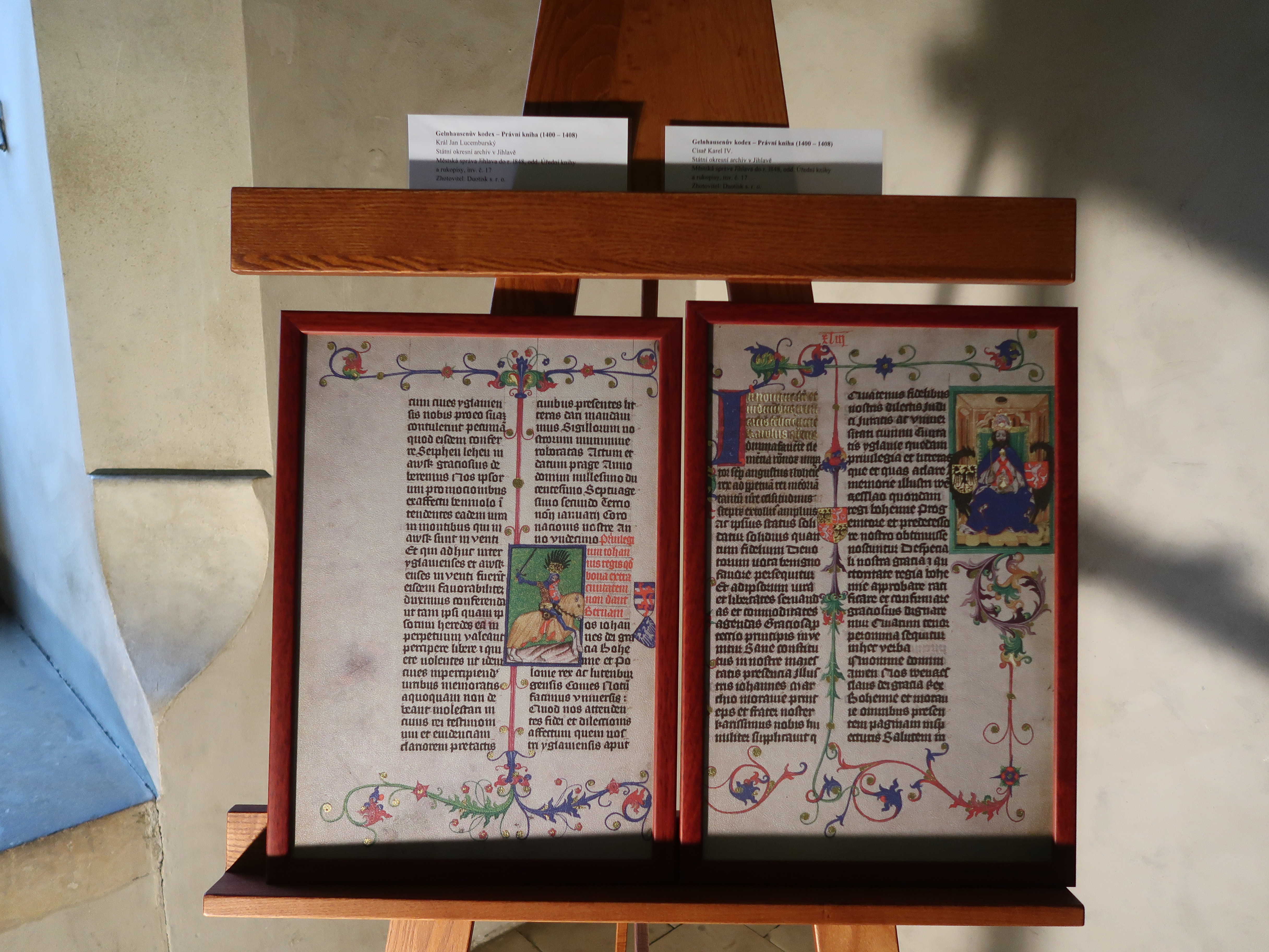 Replika Litoměřicko-třeboňské bible (Státní archiv Třeboň, archiv Litoměřice), Bible Kunše oltářníka (Národní muzeum Praha), Bible Václava IV. (Národní knihovna Vídeň), Evangeliář zábrdovický (vědecká knihovna Olomouc), Gelnhausenův kodex – neboli právní kniha (státní okresní archiv Jihlava), Evangeliář Jana z Opavy (Národní knihovna Vídeň).