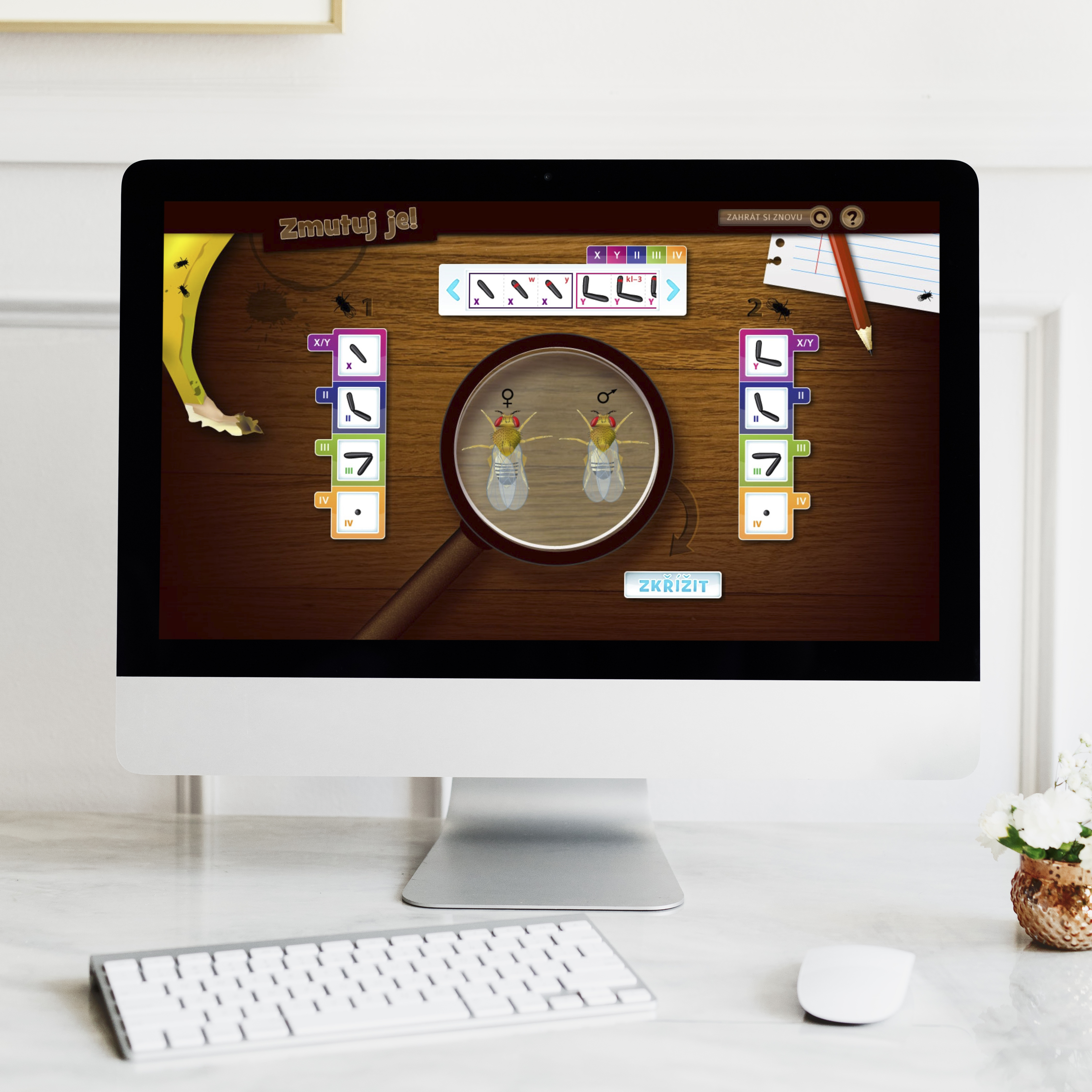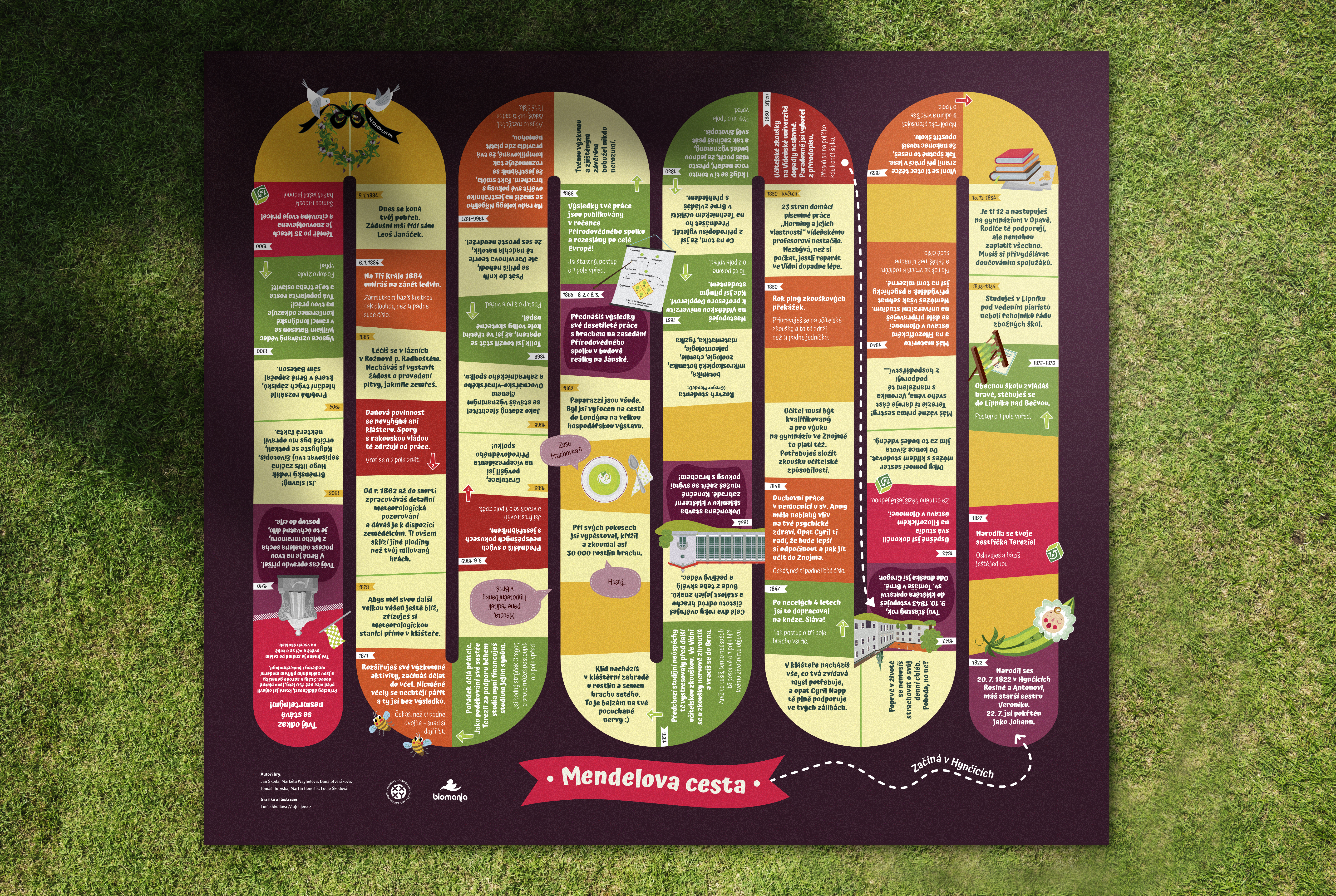 Velkoformátová biografická hra o J. G. Mendelovi - Mendelovo muzeum, edukativní online hry pro Mendelovo muzeum, didaktické pomůcky pro Geofyzikální ústav.