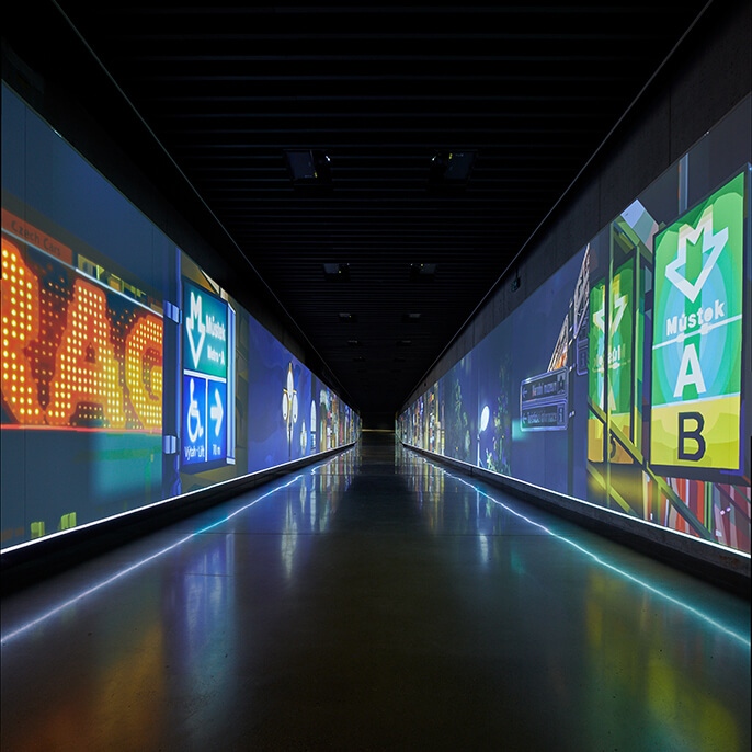 Spojovací koridor v Národním muzeu, výstava Praha 1606 v pohybu v Muzeu hl. m. Prahy, výstava Karla IV. v Domě U Zlatého prstenu.