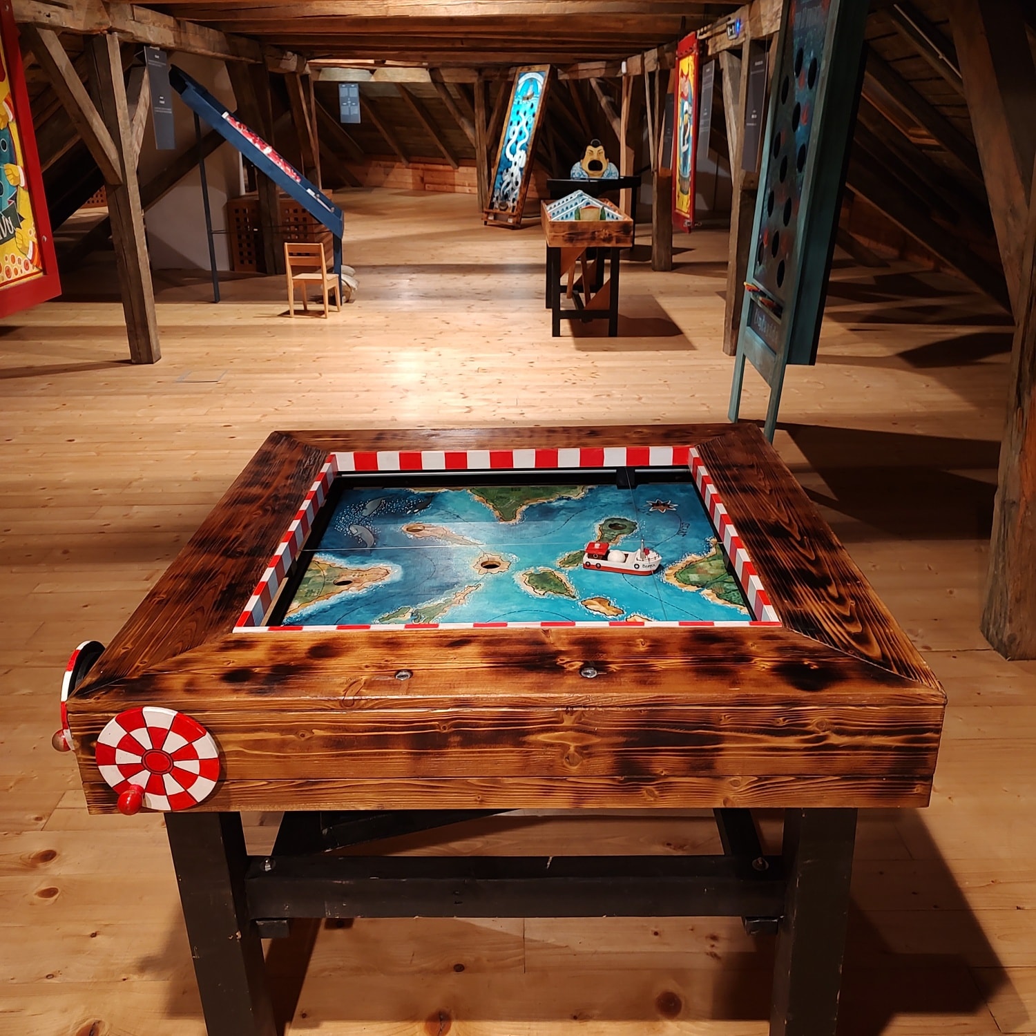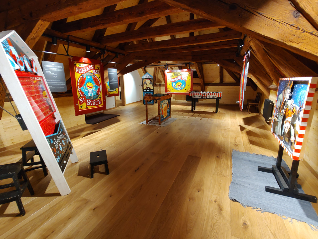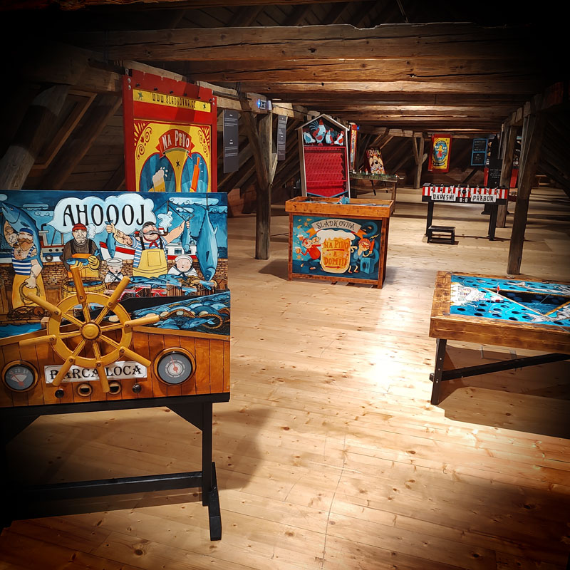 Pro Muzeum v Roztokách jsme v roce 2023/2024 realizovali interaktivní instalaci - Kočovná herna SLÁDKOVNA. Jde o vlastní projekt, mechanickou interaktivní hernu, která evokuje prostředí starých poutí. Je určena pro všechny, ve kterých stále třímá dětská radost ze života a chuť si hrát. Originální atrakce, které jinde nenajdete, prověří ostrost vaší mušky, pohotovost, trpělivost, schopnost spolupráce, sílu nebo postřeh. Můžete si zatočit klikou a nachytat pár vajíček, sestřelit pár piv a zabojovat přitom o srdce hospodské, potácet se dom, zatímco se s vámi motá celý svět nebo dětem osladit život a nandat jim, co se do nich vejde, vylovit perly ze dna moře, pokusit se protáhnout kolem obří krakatice nebo zkusit úspěšně proplout velrybí zátokou a dovézt náklad bezpečně do přístavu a cestou domu si ještě střihnout valčík skrz parčík.